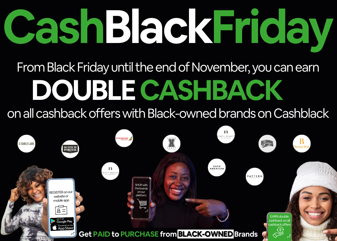 From Black Friday until the end of November you earn double cashback on all eligible offers with Black owned brands when you shop through Cashbla..